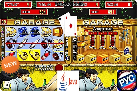 Это java-эмулятор игрового автомата однорукий бандит – Гаражи – для твоей мобилы. Запускаешь барабан и он вращается-останавливается. От комбинации выпавших символов зависит твой выигрыш. Всем правит госпожа удача. Год выпуска/Year of issue: 2012 Жанр/Genre: Азартные/Gambling Категория/Category: Java игры/Java games Размер экрана/Screen size: 240x320 Multi Разработчик/Developer: Ga2me Платформа/Platform: Java Формат файла/File format: .jar Вид устройства/Appearance of the device: для телефонов/for phones Язык интерфейса/Interface language: русский (RU) Размер/Size: 1,33 Mb Статус игры/The status of the game: бесплатная/free Подготовил/Prepared by: FileFast